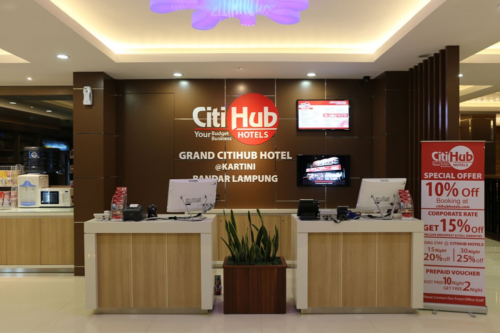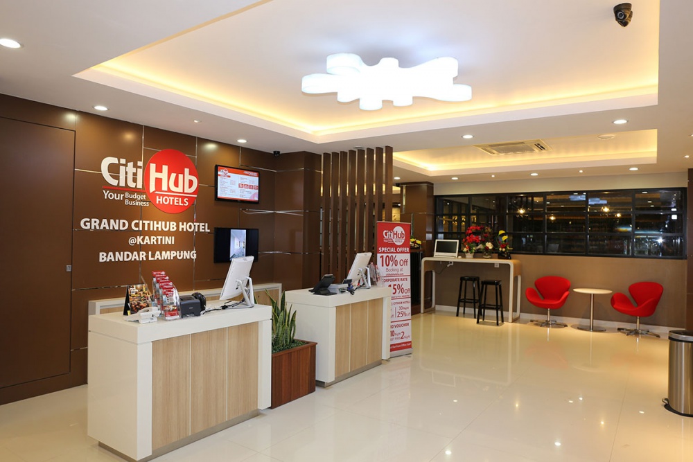 Grand Citihub Hotel @Kartini - Lampung is a new budget hotel in Lampung. The modern building located at a strategic spot and it was just opened in June 2015. We are at the center of the town, just a walk away from the shopping mall and many shops.